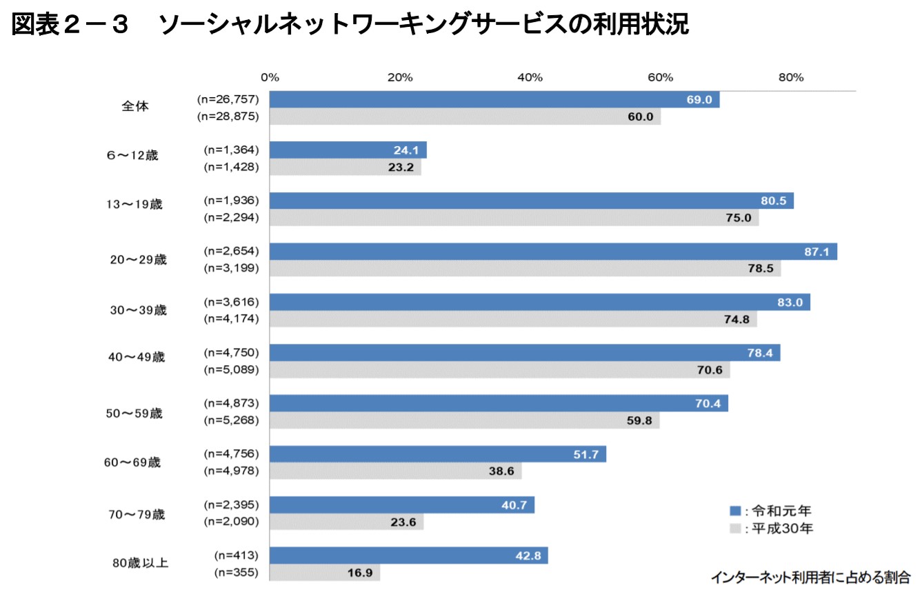 日本におけるSNSの利用状況